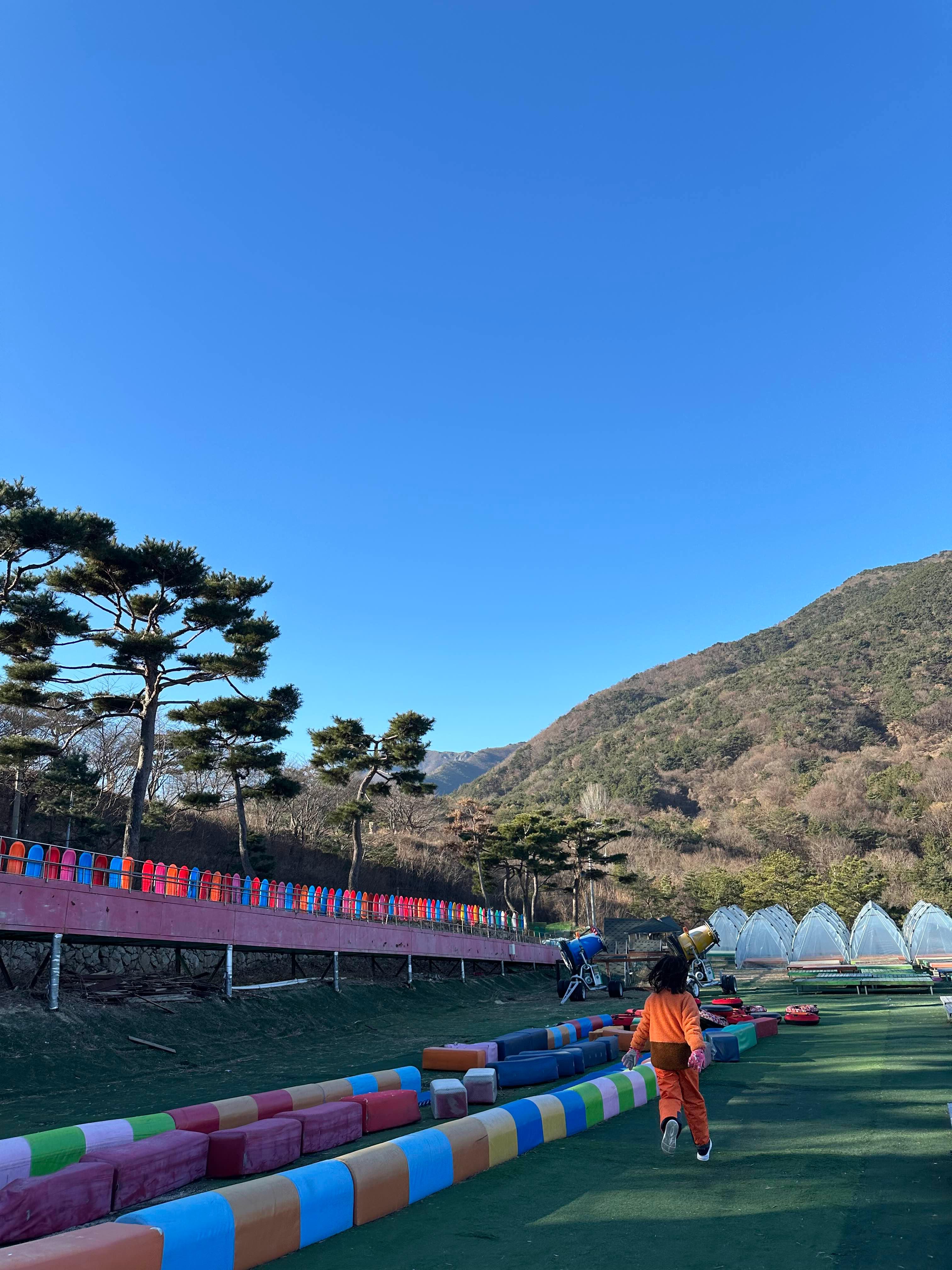 근데 낮은 눈썰매장에 튜브 레일 고장나서